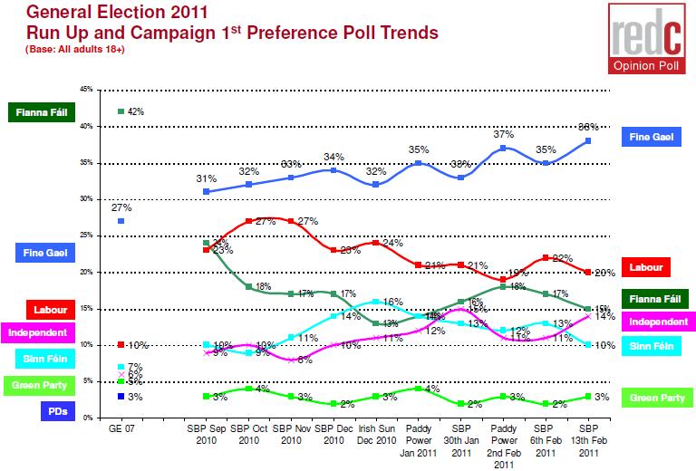 The election is far from over. We can still see from the Red-C SBP poll that Fine Gael and Labour have a lot of ‘soft’ support of ‘likely to’ and might do’ potential voters, which can be won from each other. But Labour need to change its strategy.