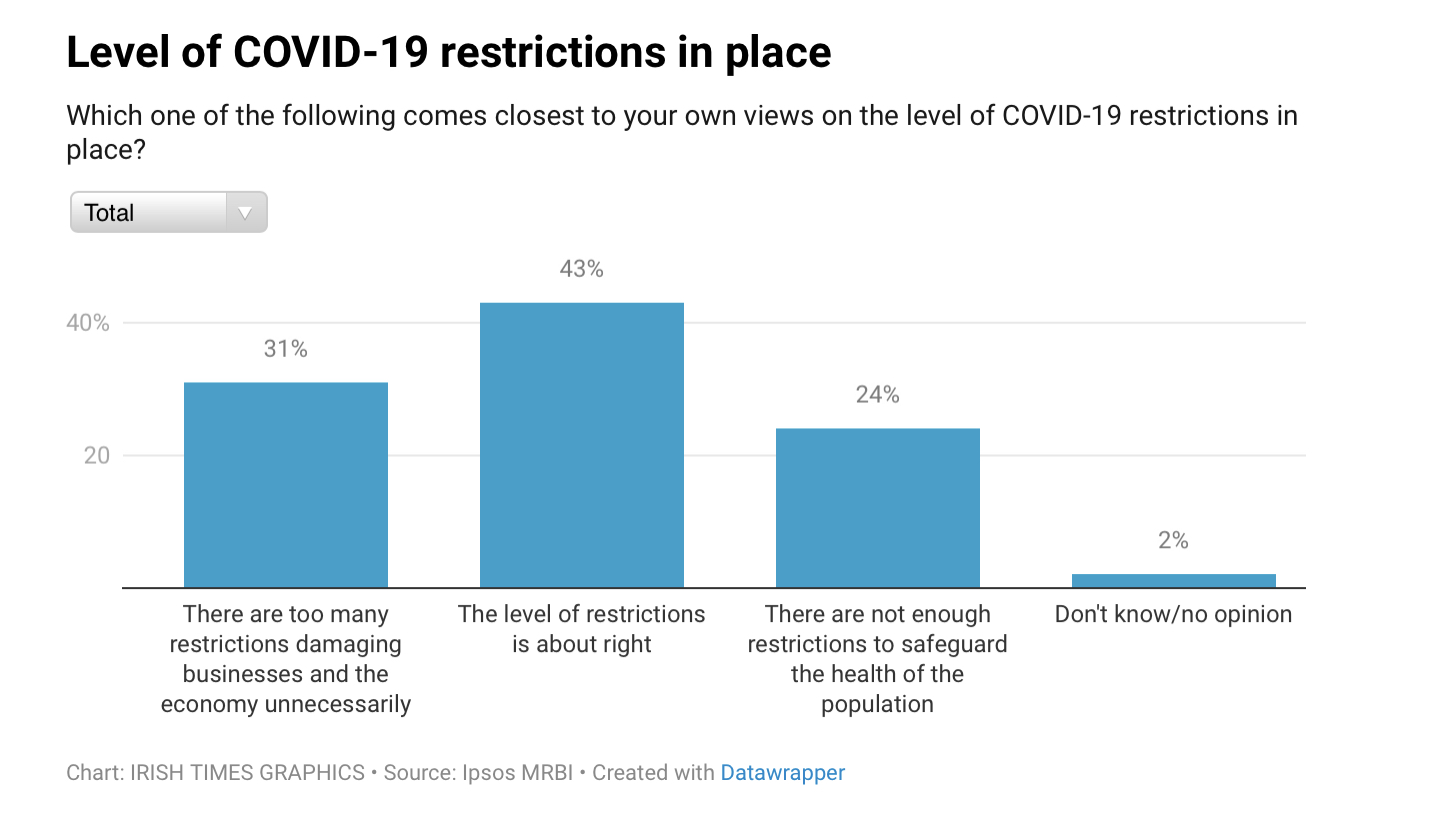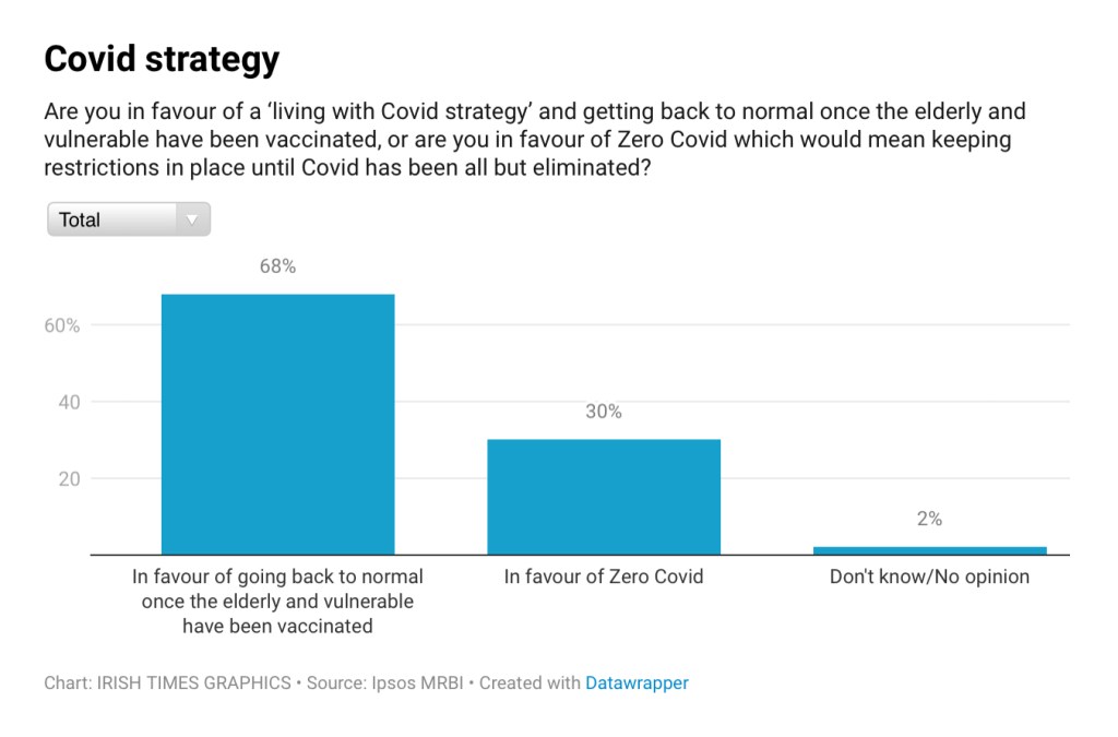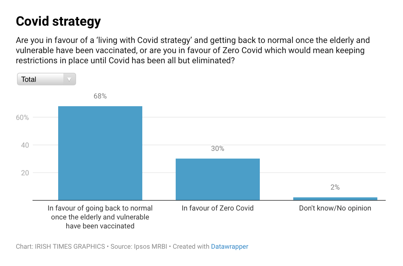 Today’s Irish Times poll created a small social media storm as some took delight in the apparent public shift in positions on the restrictions in Covid, and others, particularly supporters of the so-called ZeroCovid strategy, were appalled and immediately tried to poke holes in the survey. They argued that the questions were biased, and pointed to other surveys that showed public support in favour of their position.